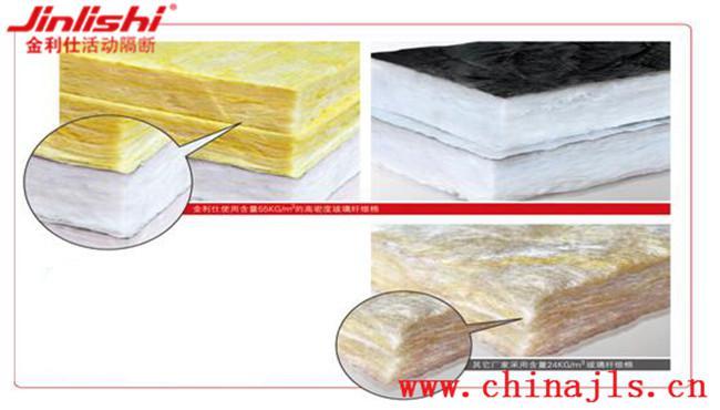 不止于此,这金利仕出品的酒店屏风还有一个优点尤令酒店欣喜异常,那就是它优秀的隔音性能。在打造酒店屏风的时候,我们选用了55KG/m³的高密度玻璃纤维棉作为产品内部的填充材料。众所周知,玻璃纤维棉内部纤维蓬松交错,存在大量微小的孔隙,是典型的多孔性吸音材料,具有良好的吸音特性。而作为一种吸引材料,它的吸音效果优秀与否,是取决于自身厚度以及密度的。换一句话说,那就是密度越高,它的吸音效果越好。而金利仕使用的是55KG/m³的玻璃纤维棉,与其他隔断厂商还在使用的24KG/m³而言,具有非常明显的优势,从而大大提高酒店屏风的隔音性能。