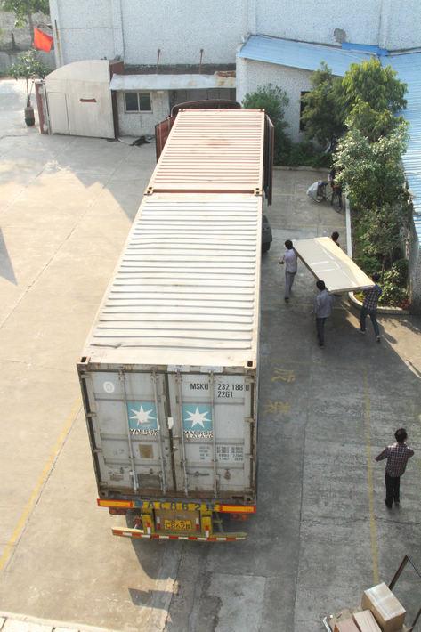 今天早上上班时集装箱货柜已经准时候在金利仕装货区,只因俄罗斯客户要求准时出货到港口,金利仕各部门人员也在八点上班时集合,分工合作。将已经打包好的活动隔断产品,搬运到集装箱里按照标准摆放整齐。