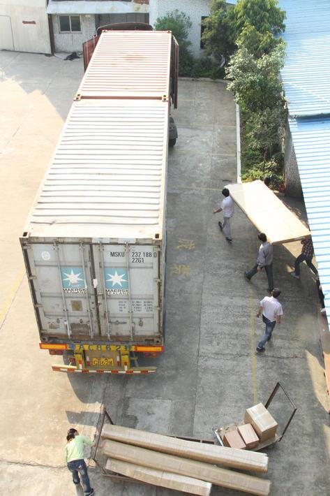 金利仕隔断人员搬运现场直击,在灿烂的阳光的照射下,金利仕人员都干得热火朝天,很快就将货物搬运到集装箱里,按照标准摆放整齐。